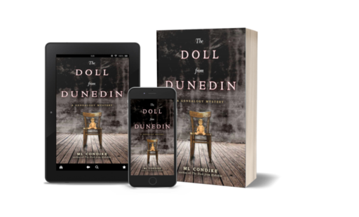 The Doll from Dunedin is the second book in M.L. Condike’s wonderful Genealogy Mystery series featuring forensic genealogist RaeJean Hunter and the search for the missing heir of a wealthy New York woman she’s met while working on a previous assignment. Jill Harriet Hamilton had died earlier in the year. Per her will and the trust guiding her fortune, her attorneys had one year to locate her sole blood relation, purportedly living in New Zealand, before her considerable assets were bequeathed to Columbia University. With six months gone and no closer to locating the man, the firm turns to RaeJean for answers.